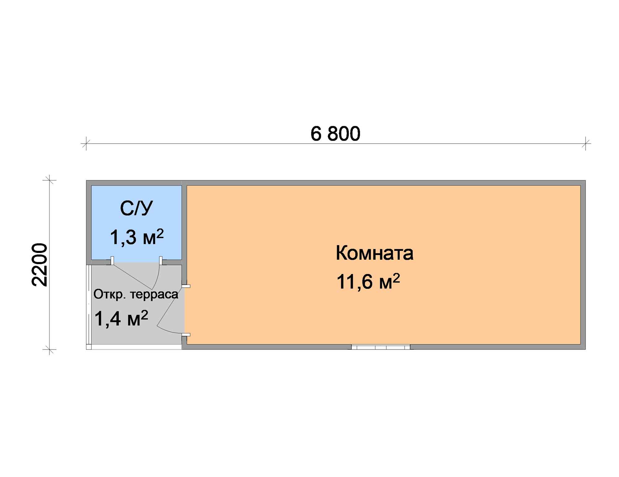 Дачная бытовка Тюльпан6.8x2.214.96ДВП-Оргалит: